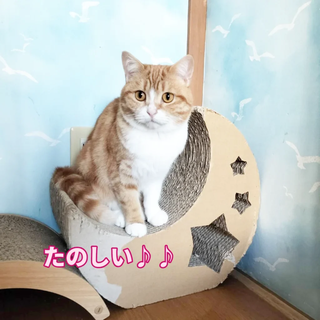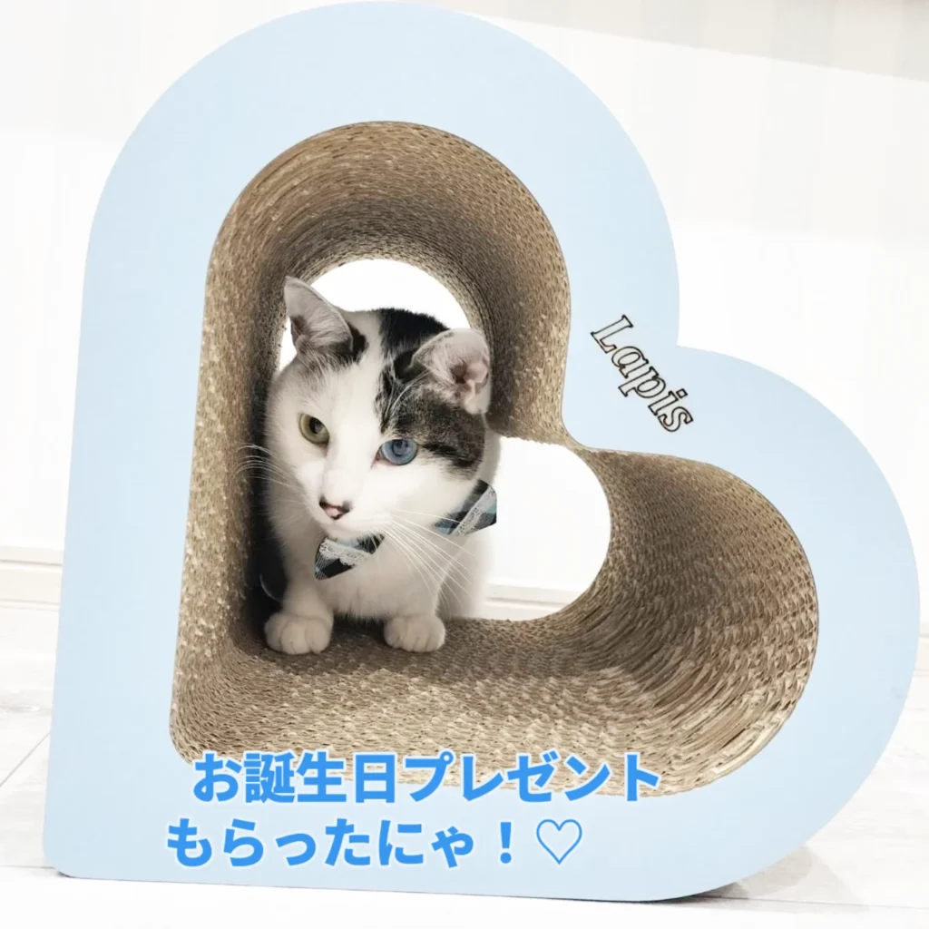 昨日、ラピスへのプレゼントとして新しい“おしゃんな爪とぎ”が届きました。
